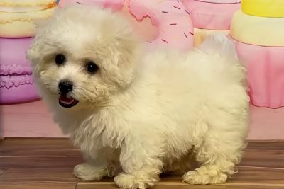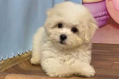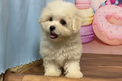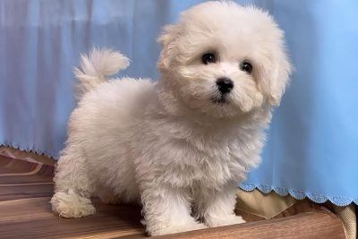 被毛:ピュアホワイトの巻き毛。シングルコートで抜け毛が少なく、アレルギー持ちの人にも優しいかも!性格:優しくて控えめ、でも陽気で遊び好き。飼い主にとっても素直で甘えん坊💕